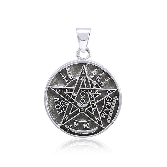 "In the Name of God, the God of Israel : May Michael be at my right hand, Gabriel at my left, Uriel before me, Raphael behind me, and above my head, the presence of God." The four letter tetragrammaton (literally, `four letters`) is the true name of the God of the Hebrew scriptures. Its pronunciation is considered to have great power, and is never spoken aloud, save for once a year, in the inner sanctuary of the Temple during the rites of Yom Kippur. In written scripture, it is given the vowel markings and pronunciation of the word Adonai, lord, leading to the common Christian mispronunciation of the name as Jehovah. It is commonly referred to as "HaShem," the name. The tetragrammaton is central to the doctrines of both the Jewish and Esoteric Kabbalistic traditions, where it is equivalent to the four worlds of creation, the four elements, the four archangels, and the four cardinal directions. The four weapons of Ritual magick symbolize the essence of the letters of the tetragrammaton; these also form the basis for the four suits in a deck of Tarot cards. This sterling silver amulet measures 1" in diameter, no chain is included with this piece.